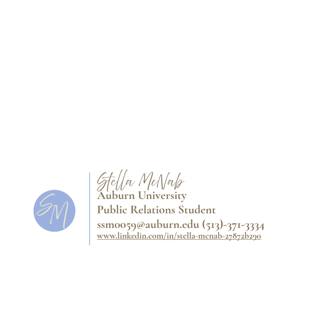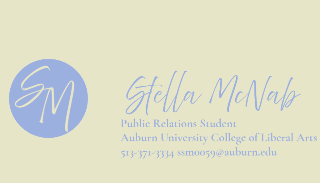 My second semester of junior year I took PRCM 4020 Digital Style and Design course at Auburn University. I learned how to use and improve my skills in Adobe Creative Suite programs like Photoshop, Express, InDesign, Illustrator, Lightroom, and more.